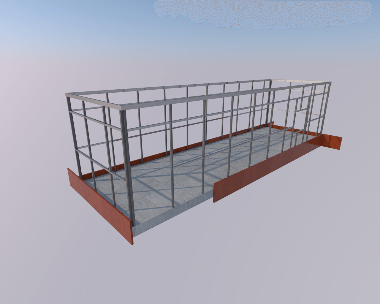 - Laje colaborante com betonilha leve e estrutura em perfis de aço laminado a quente, galvanizados